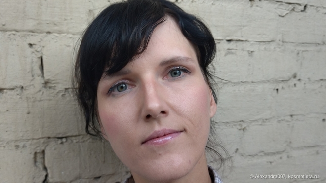 В оттенке я вижу некую молочную ноту, но, вопреки опасениям, он не выбеливает, лежит хорошо, никуда не проваливается, за контур не убегает, полоску не образовывает, губы не тинтует.