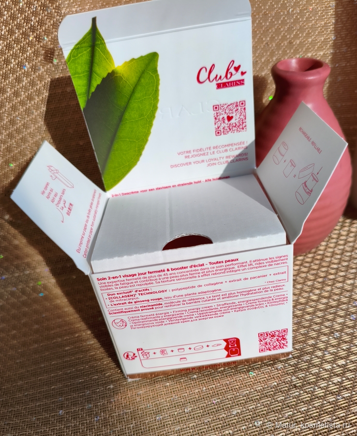 Упаковка — коробка в классическом узнаваемом стиле Clarins