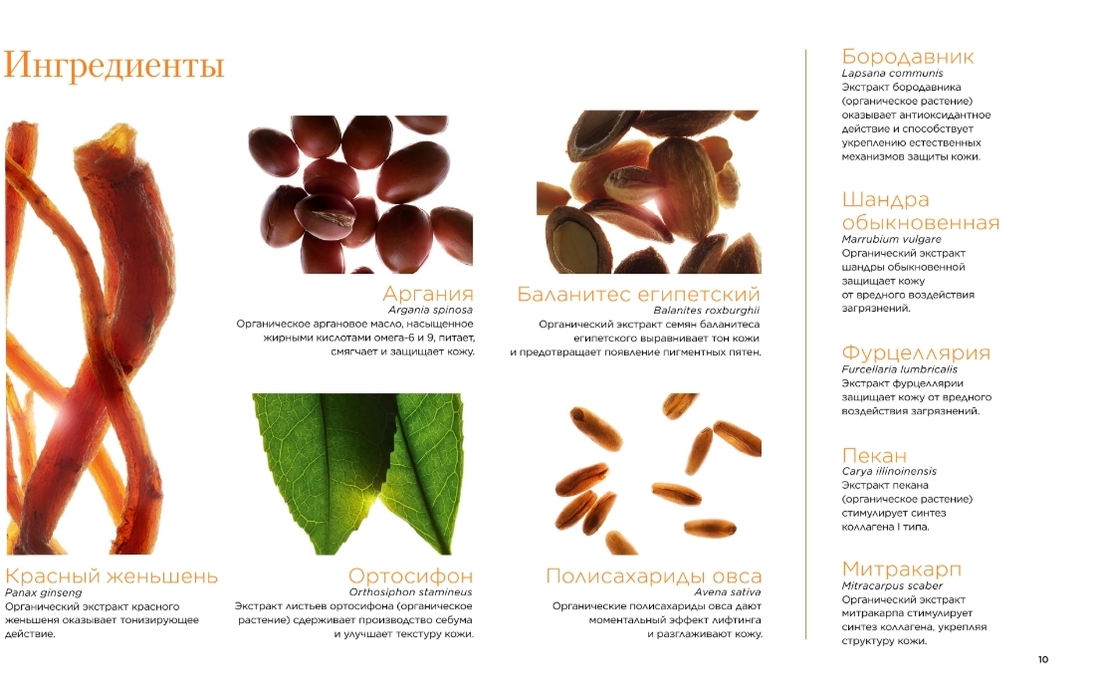 Это, пожалуй, самое важное в креме, поэтому в пункте задержимчя чуточку дольше. Clarins очень трепетно относится к составам косметики и растительные ингредиенты составляют около 90%. В этом креме использованы вот такие