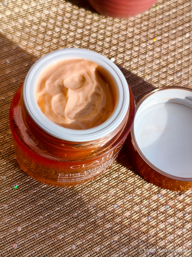 Баночка тяжёлая, из стекла, жизнерадостного оранжевого цвета. Лично мне очень нравится дизайн кремов Clarins