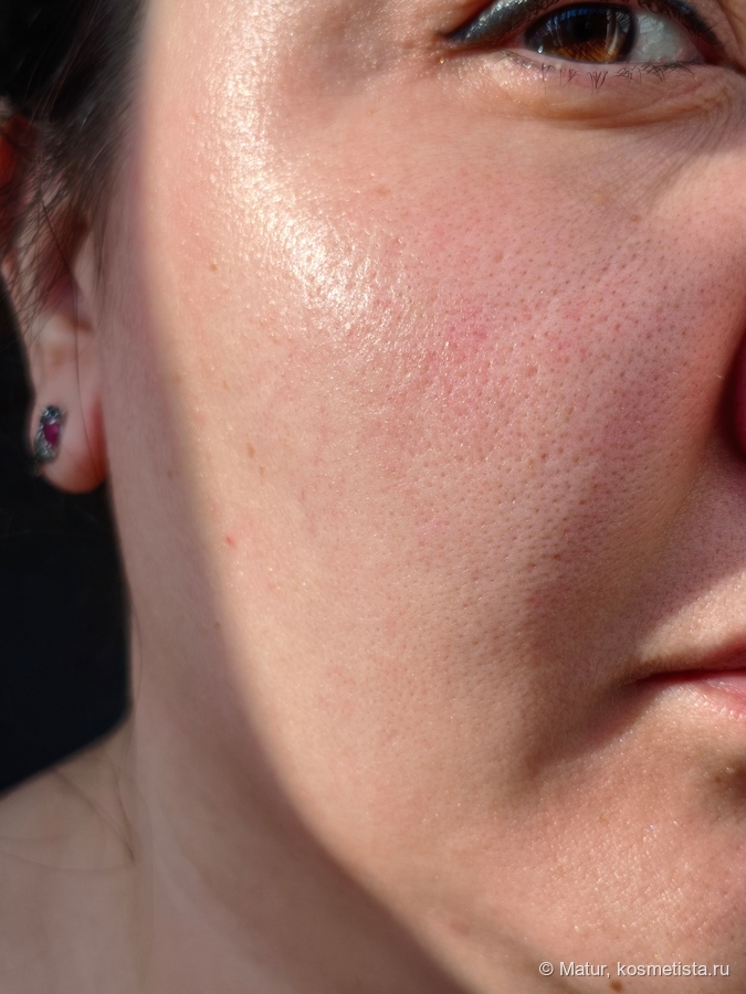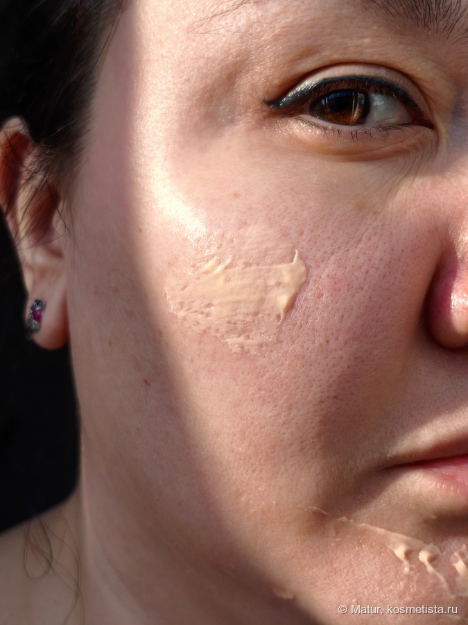 Результат. Это тот случай, когда уходовый крем мгновенно, по крайней мере визуально, преображает кожу. Мелкий шиммер делает своё дело и кожа очень красиво подсвечивается