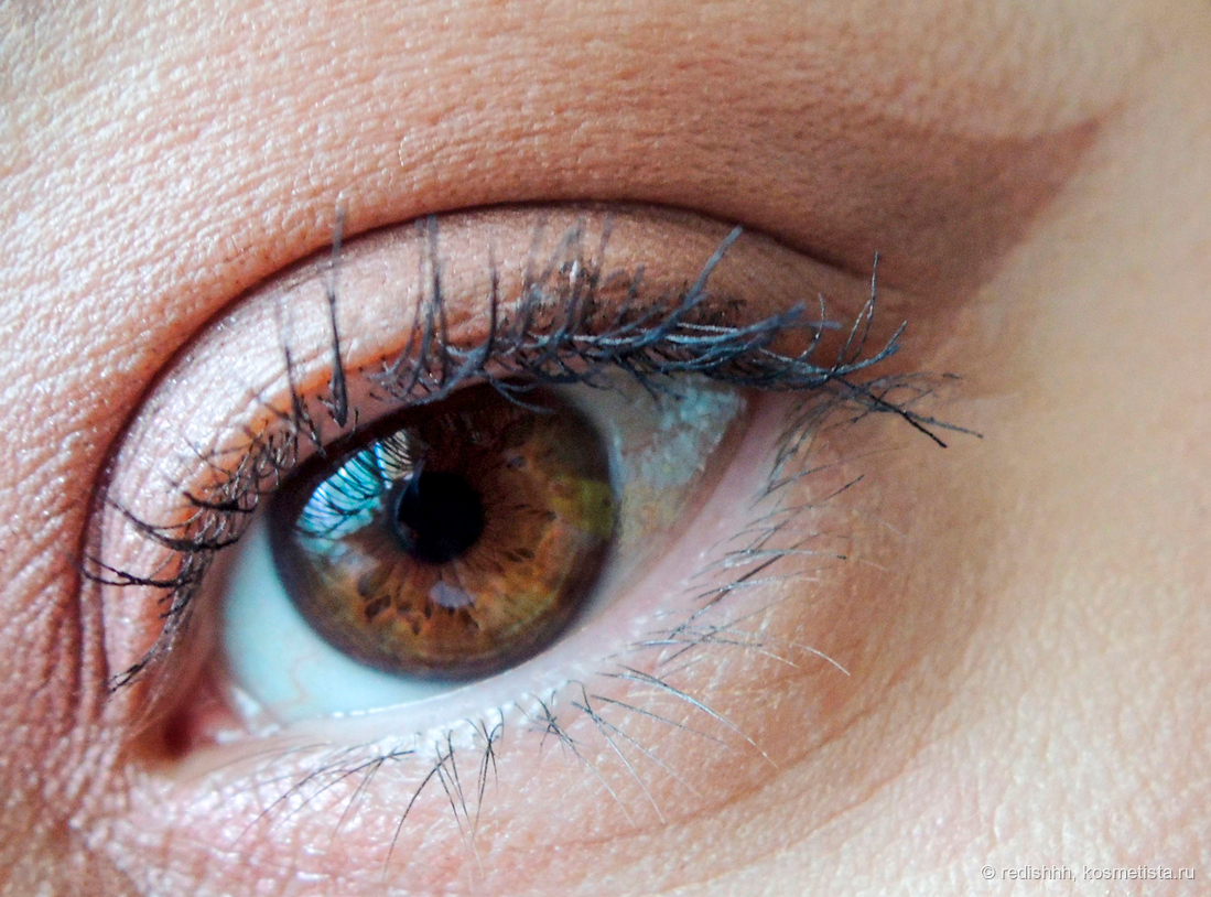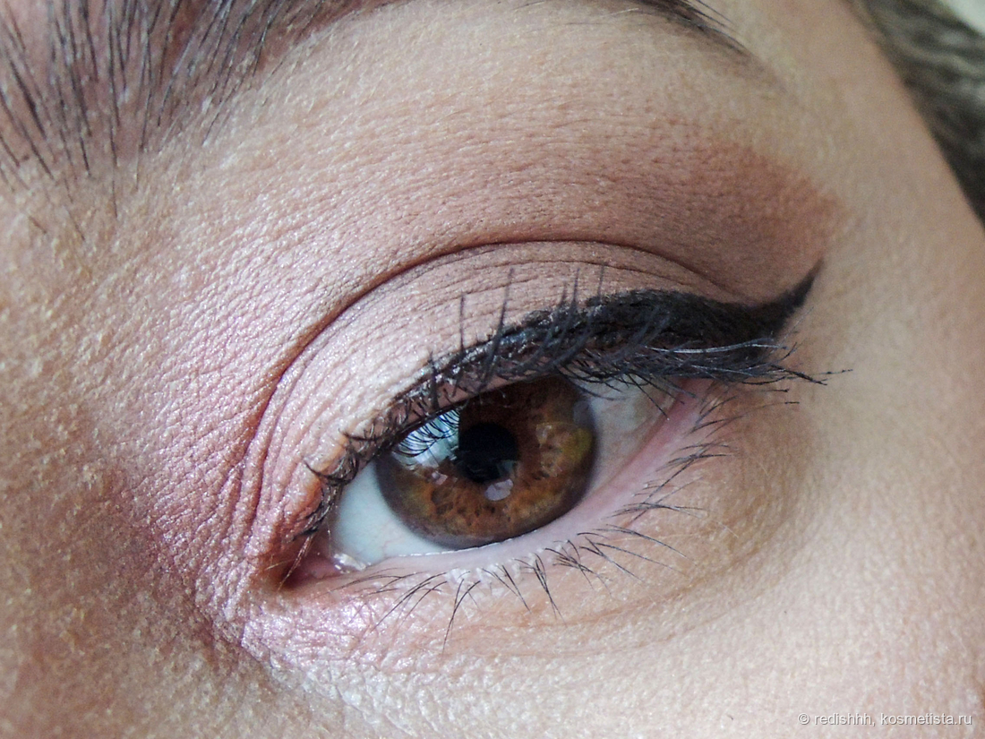 Макияж №1 — самый светлый матовый на подвижное веко, карамельным оттенком выполнена стрелка.
