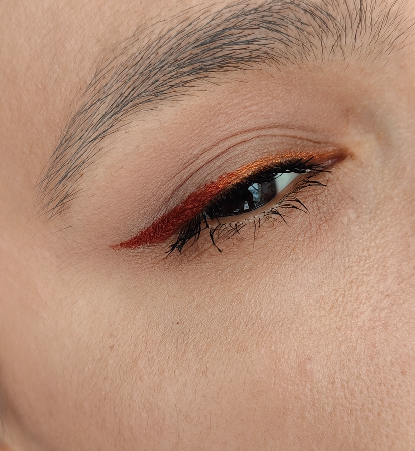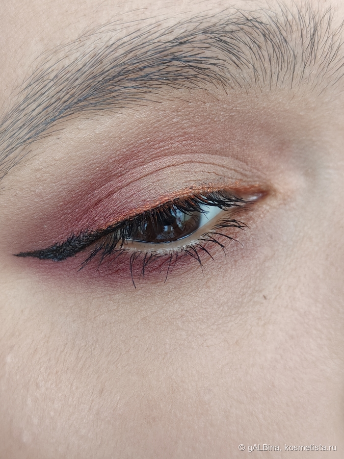 Здесь я уже использовала crimson sky, тёмно-коричневый из палетки Eveline и высветлила тушёвку skeletonом, на всём подвижном веке Tammy Tanuka «Огненноволосая сестра»: