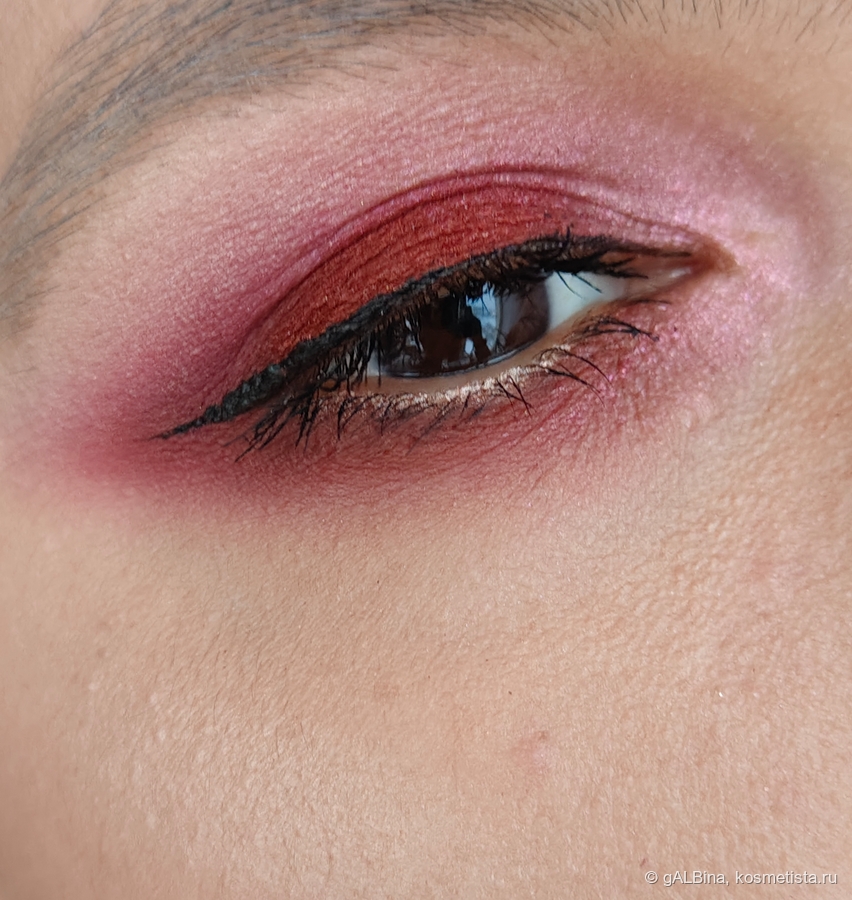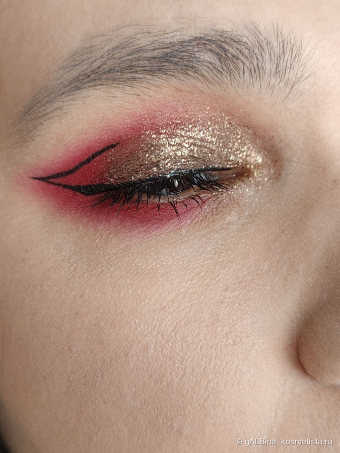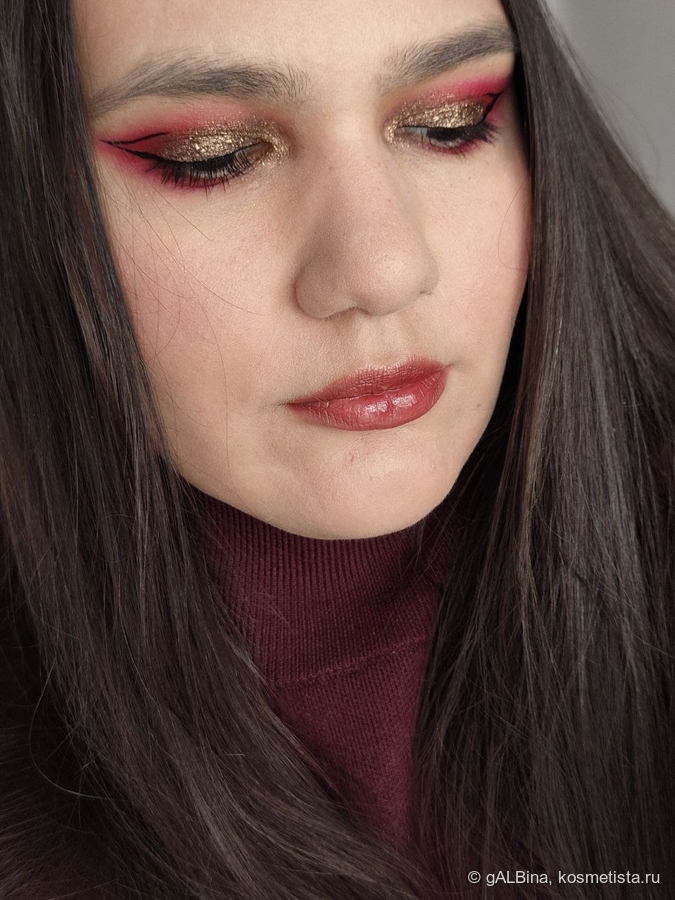 Гамма довольно разнообразная. Чаще расчехляю для красных макияжей, но не всегда всё идёт по плану, этот макияж я планировала на неделю красных оттенков, но что-то пошло не так и в итоге он не совсем красный, но при этом один из любимых за тот год. Макияжный пост я так и не сделала, но покажу здесь: