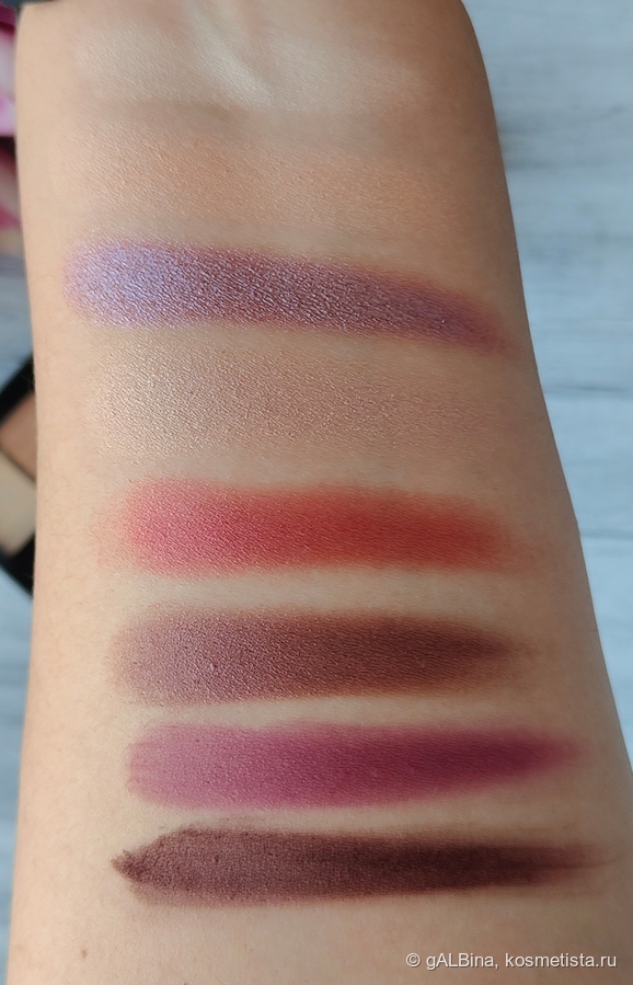 Хоть палетка уже не новая и формула устаревшая у сияющих оттенков, они довольно рыхлые. Но она остаётся одной из любимых так как оттенки идеально подобраны, вот на мой взгляд, прямо детали в полутонах и здесь с ними всё идеально. Каждый оттенок отлично вписывается и перетекает друг в друга.