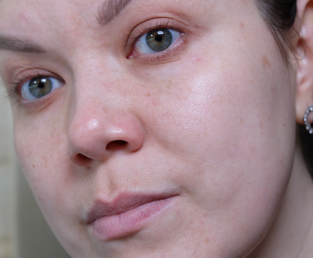 Теперь предлагаю посмотреть как он выглядит на лице. К слову, у меня нормальный тип кожи с жирной Т-зоной, из недостатков — пигментация и единичные воспаления.