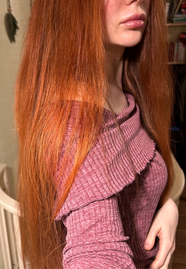 Волосы стали меньше пушиться, но эффекта выпрямления нет. Более того, из-за мягкости стали больше мяться, появились заломчики в месте резинки после сна. Волнистость полностью перебороть не получилось, где-то волосы прямые, где-то нет.