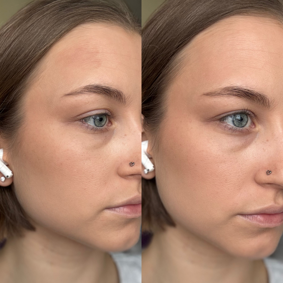 Наношу обычно две капли, остатки с кисти на лоб, нос, веки.