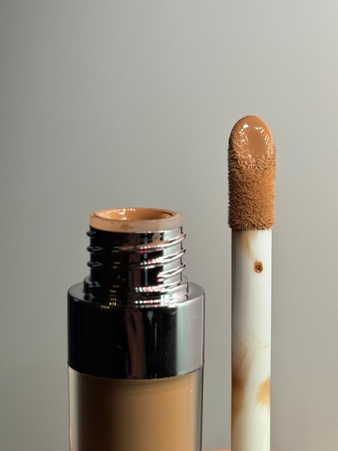 Эстетичная крупная упаковка с обычным аппликатором внутри. Консистенция очень жидкая, продукт буквально вытекает из банки. Пигментация ближе к высокой, но можно растушевать в ноль.