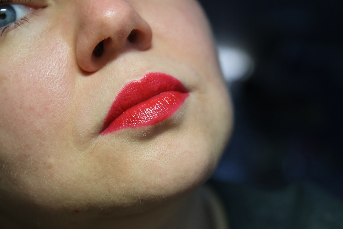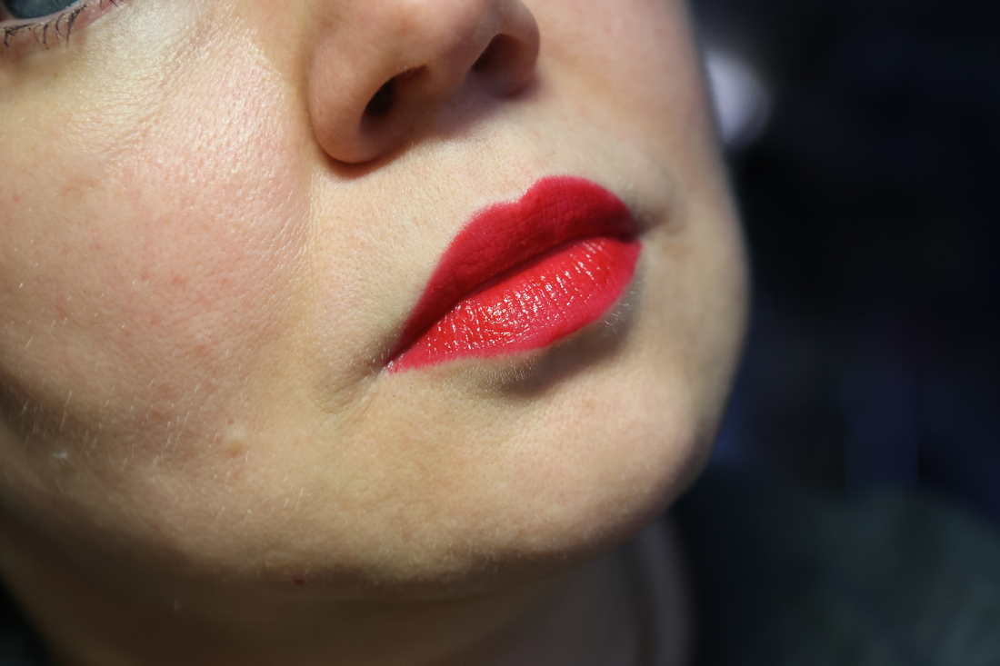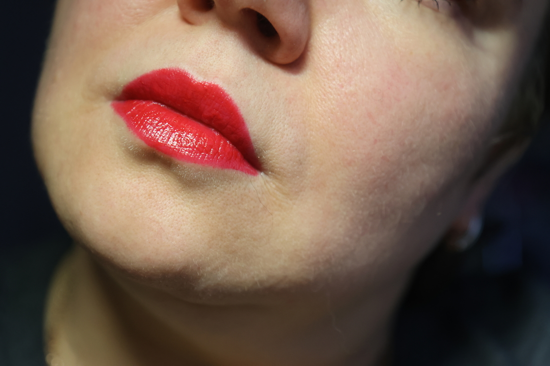 Оттенок — красный на синей базе, прохладный, с толикой фуксии. Не сушит губы. Даже проблемные. Носится часа 4-5 очень хорошо, чай выдержит. Даже неоднократный. Постепенно будет сходить по центру, но не критично — это происходит аккуратно. Стирается салфеткой, но остается оттенок. До конца не удаляется. Может остаться в складочках немного больше. Это можно решить нанесением поверх гигиенички, подержать немного и стереть все еще раз.И потом снова проделав эту операцию. Но в принципе ничего страшного, что оттенок остается я не вижу.