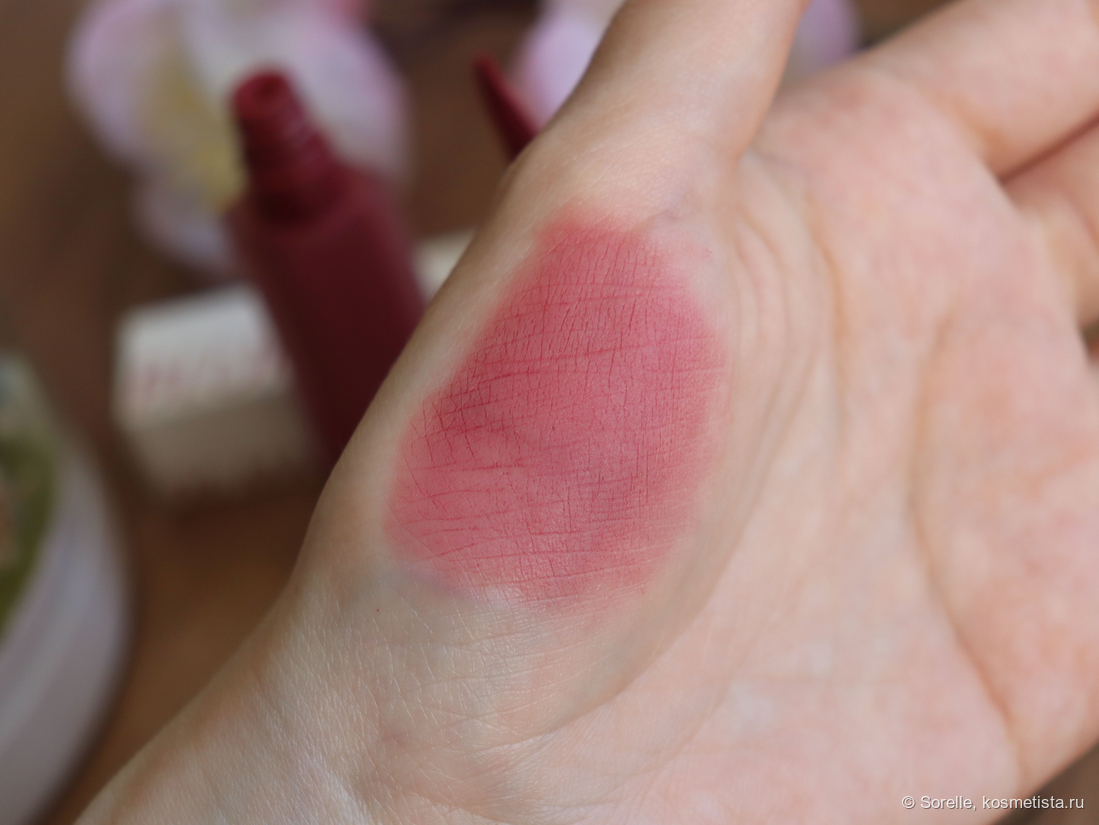 Тинтом это средство, конечно, можно назвать с натяжкой. Если стереть верхний слой салфеткой, то тонкий слой пигмента останется, но он не такой, как от привычных глянцевых тинтов, а будто бы супертонкий слой пудры на губах. Стереть его влажной салфеткой реально)