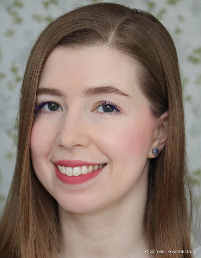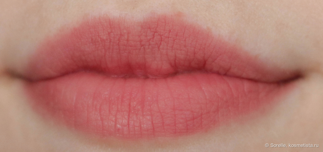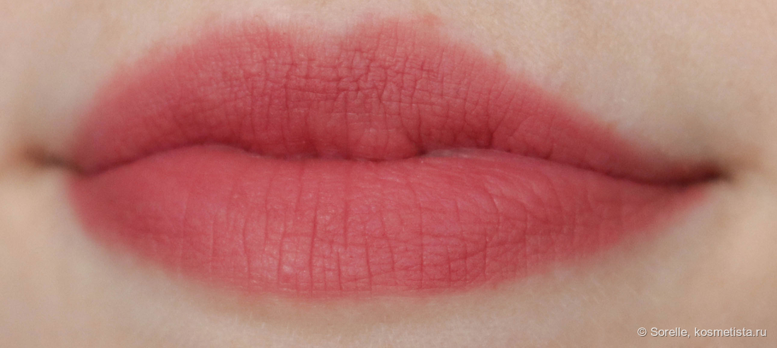 Растушевывается супертонко, покрытие на губах получается ближе к пудровому. Финиш абсолютно матовый, обещанный блюр я тут вижу, даже сухость и шелушения немного сглаживаются.