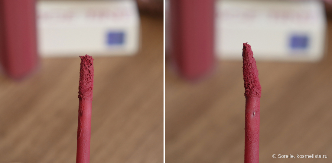 На губах тинт ведет себя хорошо — в белую полоску не скатывается, со временем не начинает выглядеть как глина (бывает такое у некоторых матовых продуктов). Кстати о глине — если нанести тинт прямо плотным слоем, то выглядеть он будет именно «глиняно»)