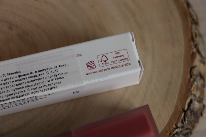 У тинта есть отдушка — мне пахнет чем-то химозно-шоколадным. Запах не резкий, с губ быстро выветривается.