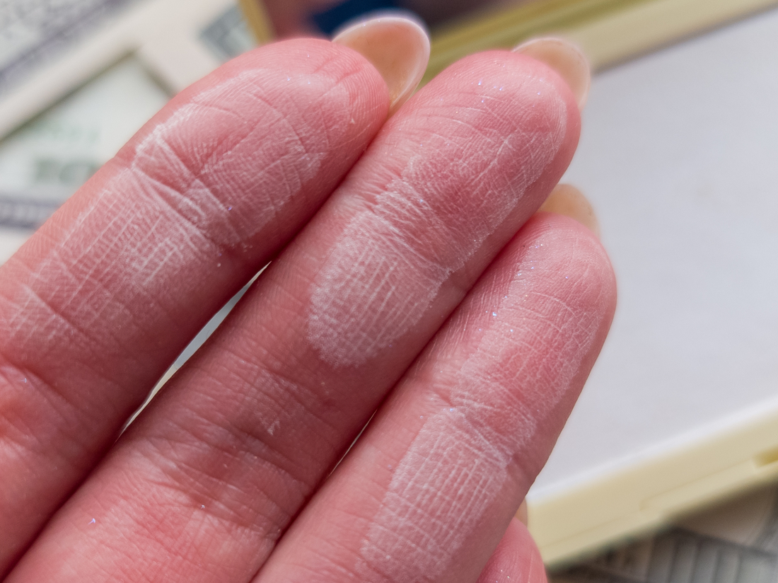 Блёсток в составе нет, просто я, видимо, что-то свотчила до этого и заметила их только в момент обработки снимков.