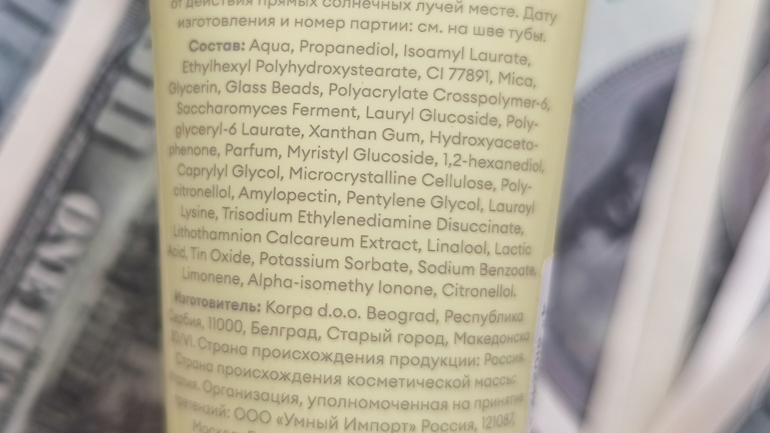 Я обычно не акцентирую внимание на составах декоративных средств, но так как база у нас с претензией на уход, предлагаю на него взглянуть. Из условно полезного вижу глицерин, ферментированный экстракт дрожжей, экстракт литотамния калькарея и молочную кислоту. А силиконы? А их нет, база на легкой, водной основе.