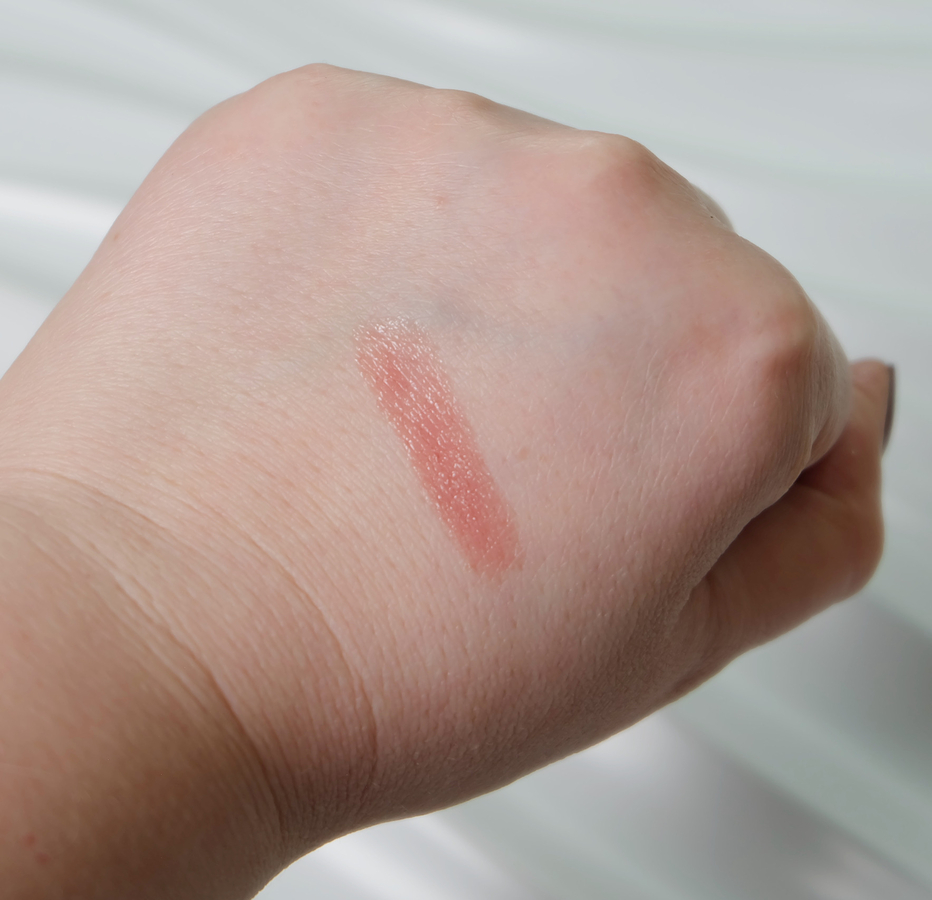 Помада обладает легкой тающей текстурой, она бальзамная, на губах оттенок полупрозрачный.