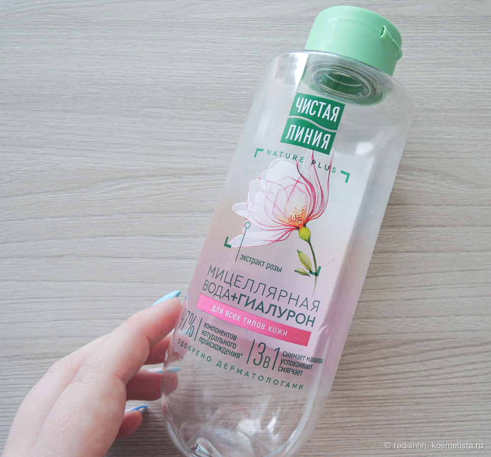 У «Чистой линии» в коллекции выходят всё новые варианты мицеллярок. Я попробовала уже все, и остаюсь верна этой с гиалуронкой. Она самая мягкая, легко удаляет макияж с лица и глаз без лишнего трения кожи и размачивания. Глаза может пощипывать, если в них попадет эта мицеллярка, но не выжигает их, если вы понимаете о чем я. Повторяю ее, с перерывами, уже много раз и буду продолжать повторять. Лицо не сушит, расходуется экономично.