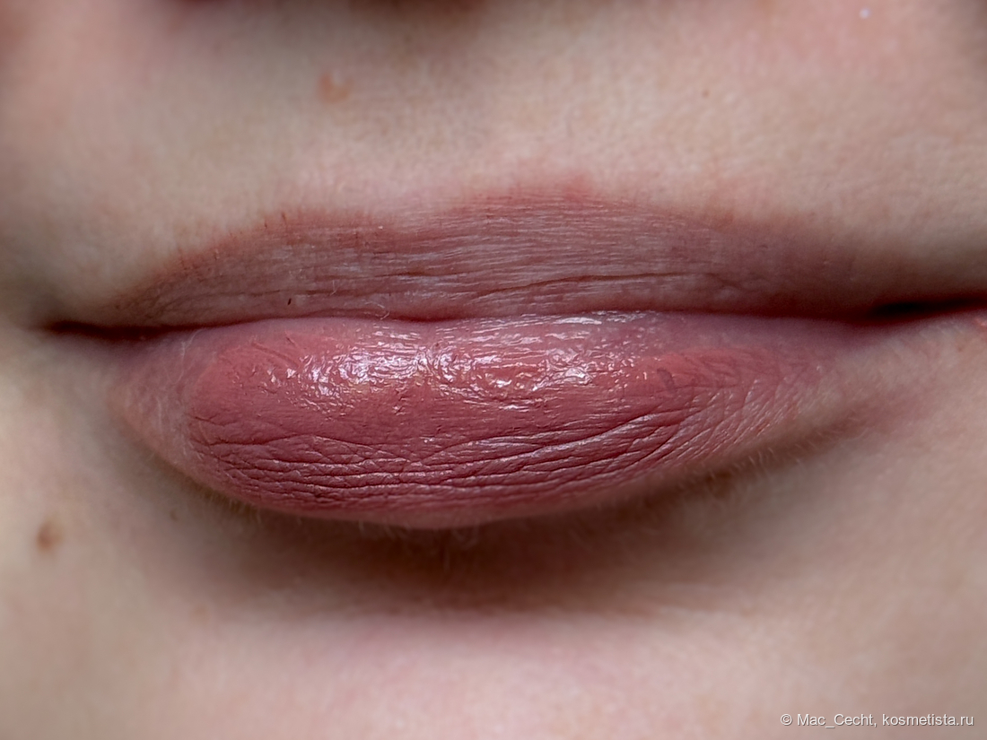 Опять же, помада мне понравилась по текстуре: я люблю влажные финиши и беспроблемное нанесение. Такую можно кинуть в карман и наносить на бегу. В помаде даже есть некий уход, не очень сильный, но хватает для смягчения сухих губ, защиты от ветра и снега и комфортной носки.