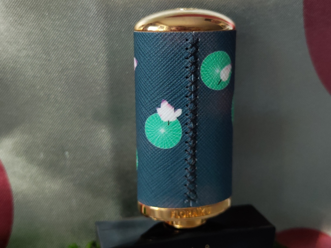 Рисунок с кувшинками находится находится на материале, похожем на кожу. Сзади зашито толстой нитью, держится крепко. В интернете можно наткнуться на этот аромат с другим рисунком на крышке, но как я понимаю это одно и то же, просто выпуски были в разное время.