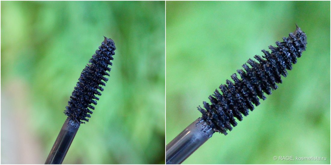 Щёточка, по-моему, тоже не изменилась – она ворсистая, мягкая, хорошо набирает продукт. Со временем, когда тушь начинает подсыхать, на неё могут налипать комочки, но т.к. я выбрасываю все туши через два месяца после начала использования, мне всё это не грозит.