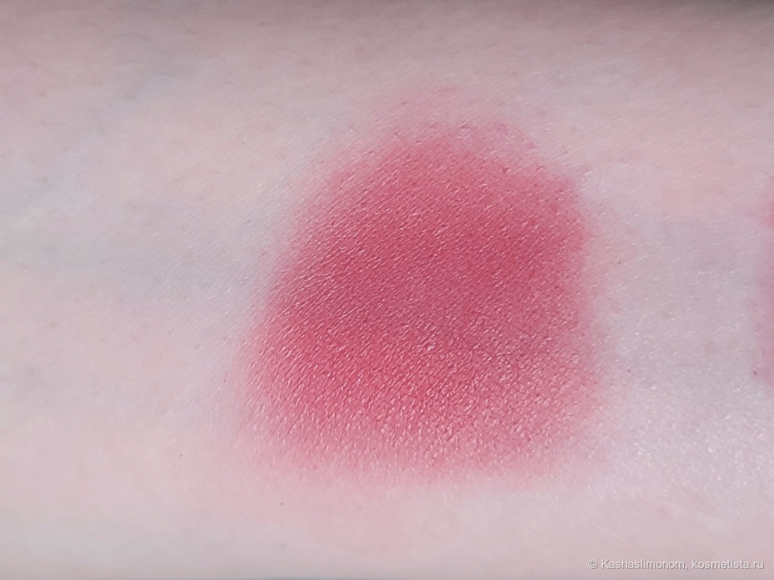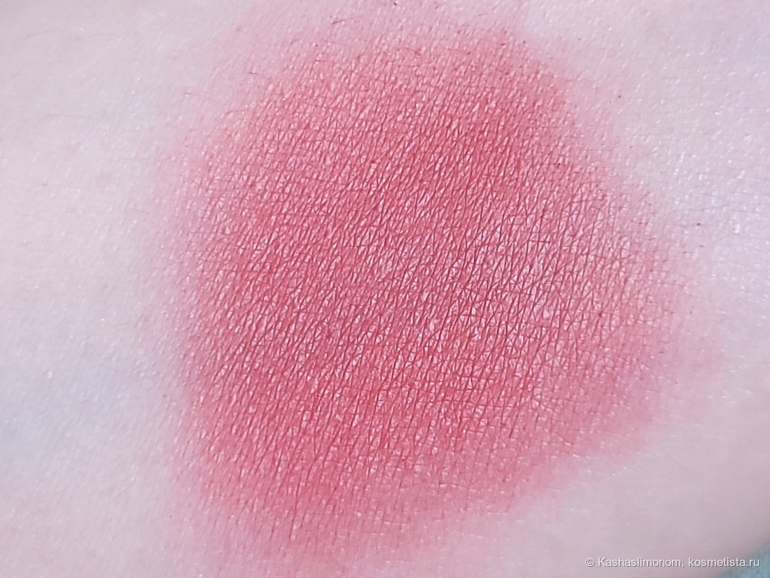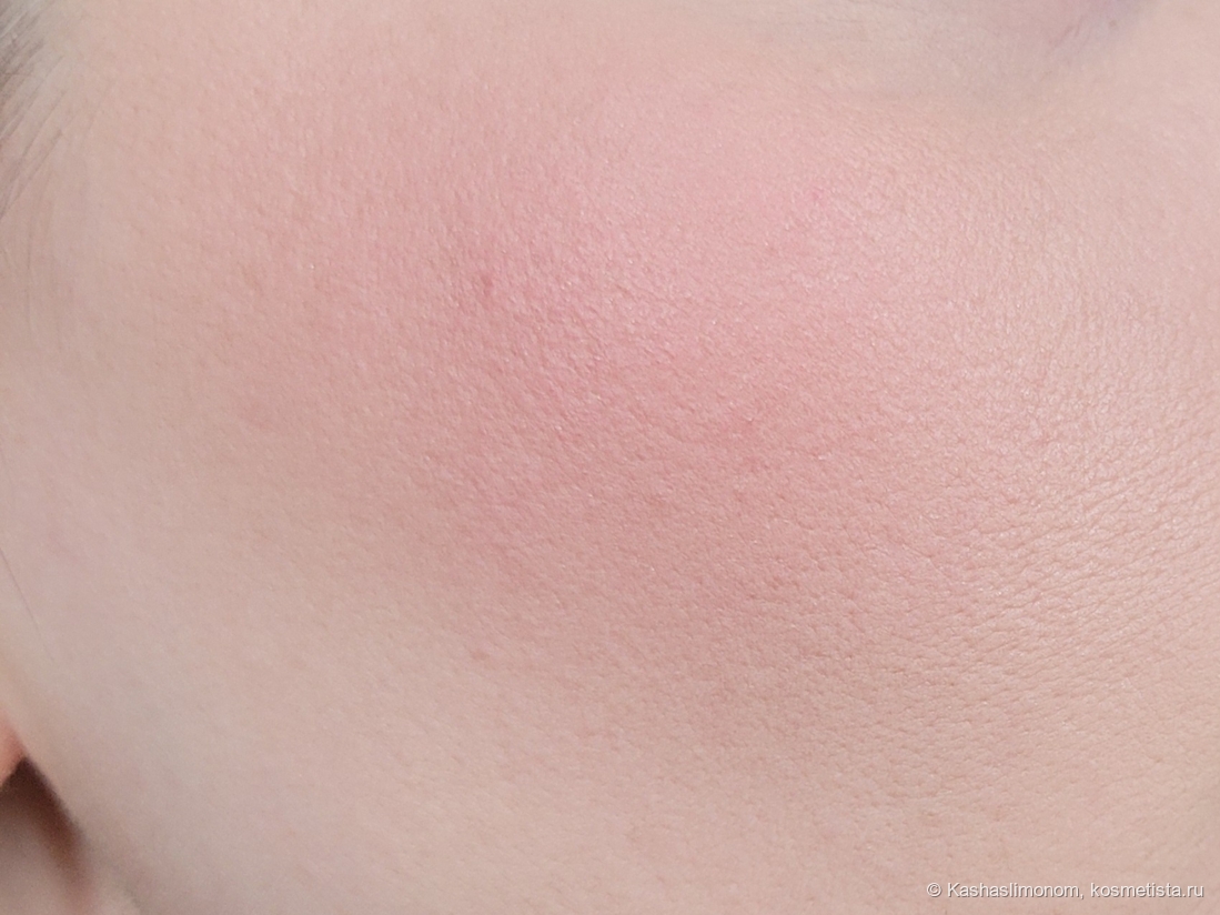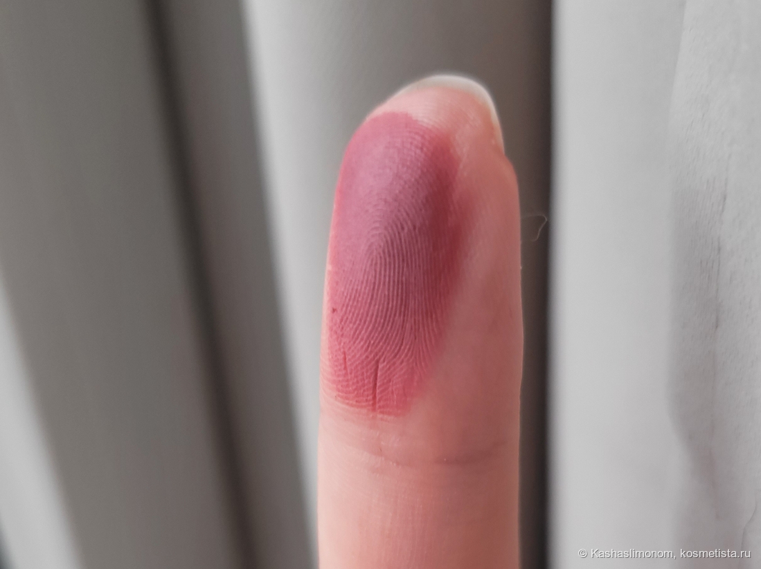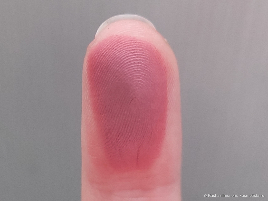 Разница между пальцесвотчем и нанесением кистью огромная. Возможно из-за плотной слегка масляной текстуры. И эффект мне нравится: на лице смотрится аккуратно. Цвет красивый: свежий, ягодный.