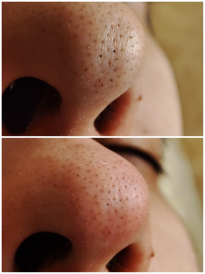 Но в заголовке не просто так написано про жирную кожу. Мне маска определенно не подошла. А вот для жирной с расширенными порами кожи она просто пёрфект! Тут эффект уже заметен: маска неплохо почистила кожу и ее содержимое. И никаких пересушиваний! Много фото не будет, но будет одно показательное.