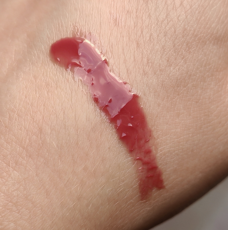 Текстура у бальзама гелевая. Она лёгкая, комфортно ощущается на губах. При этом не липкая, не растекается, в белую полоску не собирается.