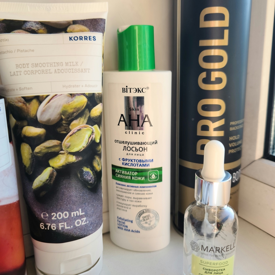 Здесь, к сожалению, не сложилось. После лосьона появились небольшие высыпания, хотя я надеялась на мягкое обновление кожи. Видимо, просто не подошёл. Использовать перестала.