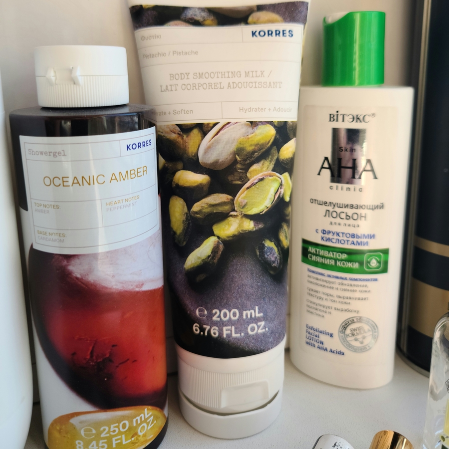 Моя любовь, о которой я уже писала отдельный обзор. Фисташковое молочко для тела — это нежность, увлажнение и волшебный аромат в одном флаконе. Объёма 200 мл хватает примерно на месяц ежедневного использования. Korres как всегда на высоте.