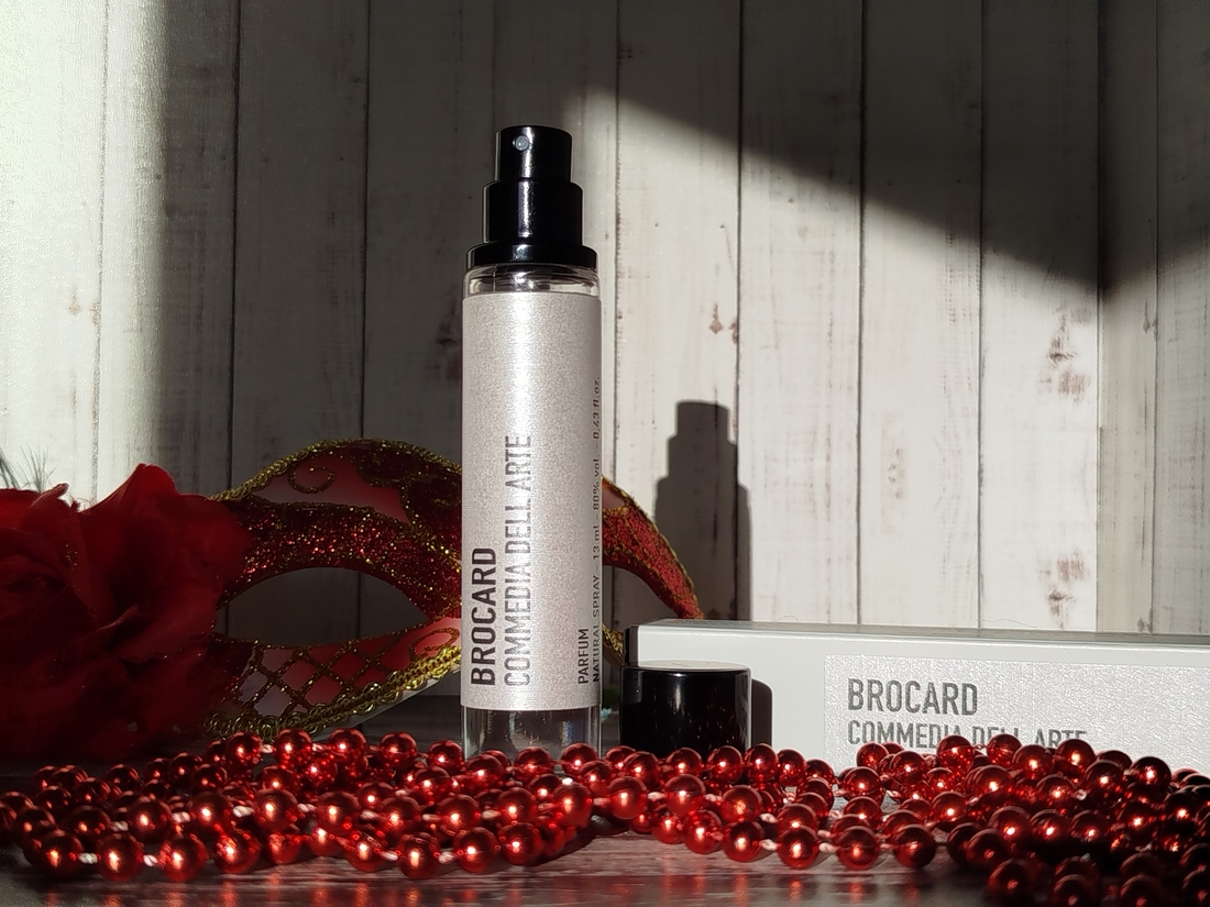 Аромат раскрывается сочными цитрусами, звучит сочная мякоть мандарина, затем солирует розовый пион, он здесь очень нежный, только распустившийся, с каплями росы на полупрозрачных лепестках. Аромат пиона изящно переплетается с легкими и свежими нотками букета миниатюрных белых роз. Персик и абрикос в сердце аромата не приторно-сладкие, а свежие и бодрящие. Больше слышен персик, а вот абрикос едва уловим на его фоне.