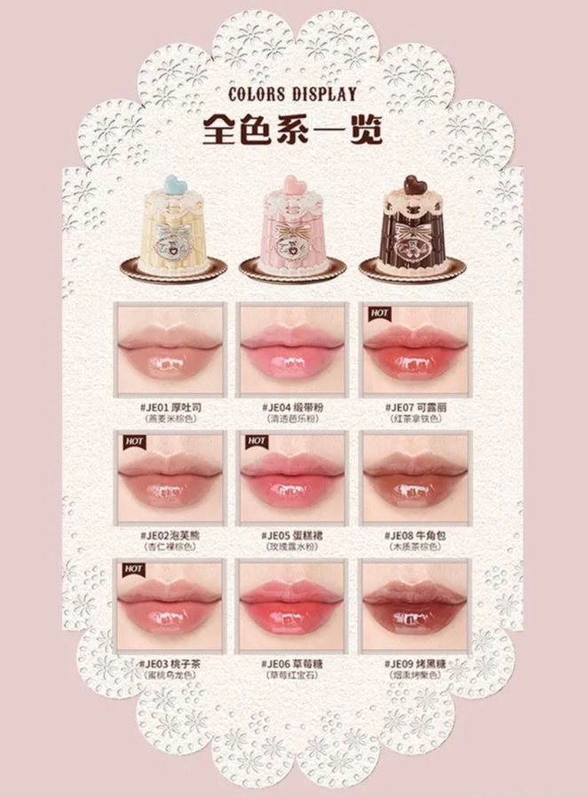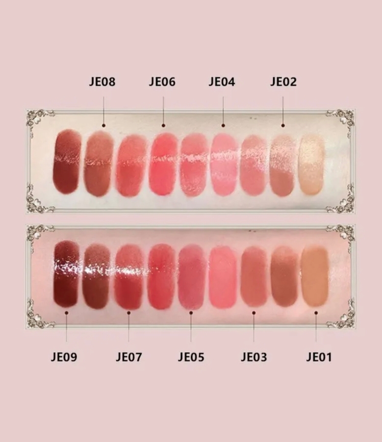 В коллекции выпущено 9 оттенков. У меня JE04 Ribbon powder.