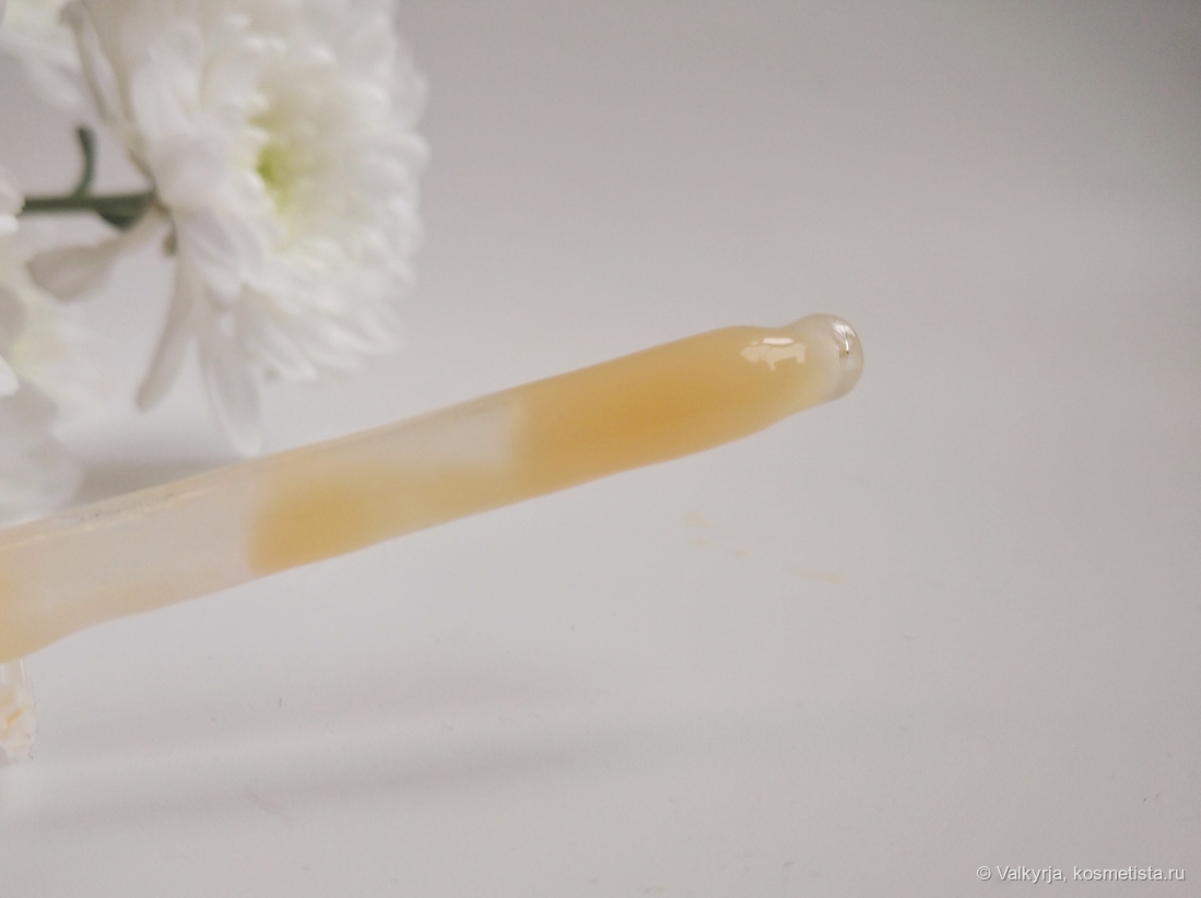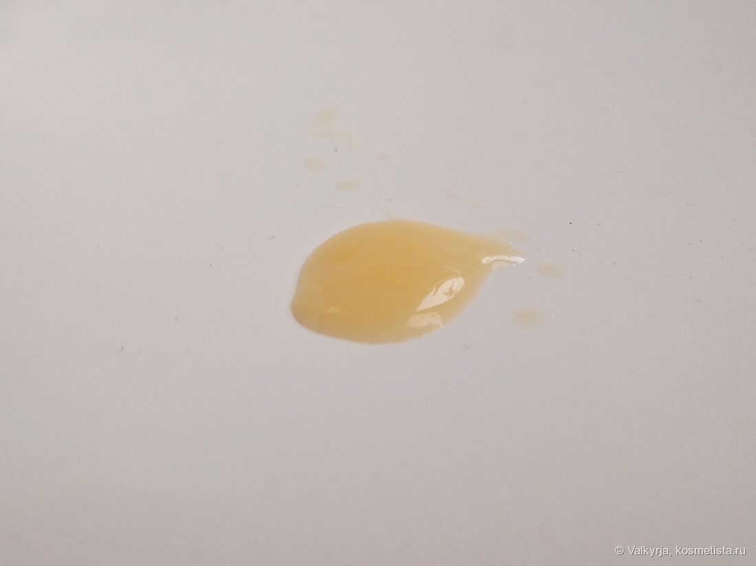 По своему внешнему виду сыворотка особо не отличается от среднестатистических серумов. Текстура гелевая, чуть вязкая, позитивного апельсинового оттенка. Наносится легко, впитывается условно быстро (за исключением нюанса в виде плёнки на коже), кожу не желтит.