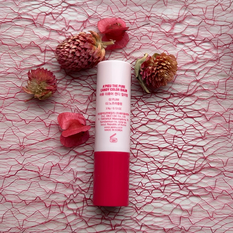 Расскажу о своей спонтанной покупке — A'pieu Candy Color Balm в оттенке 02 Plum. Схватила буквально перед выходом из магазина, понравился цвет во флаконе.
