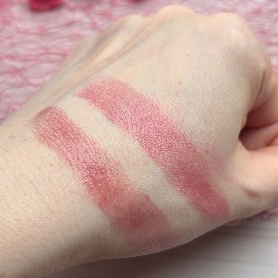 Решила сравнить с тающим бальзамом Rom&nd в оттенке 12 Veiled Rose.
