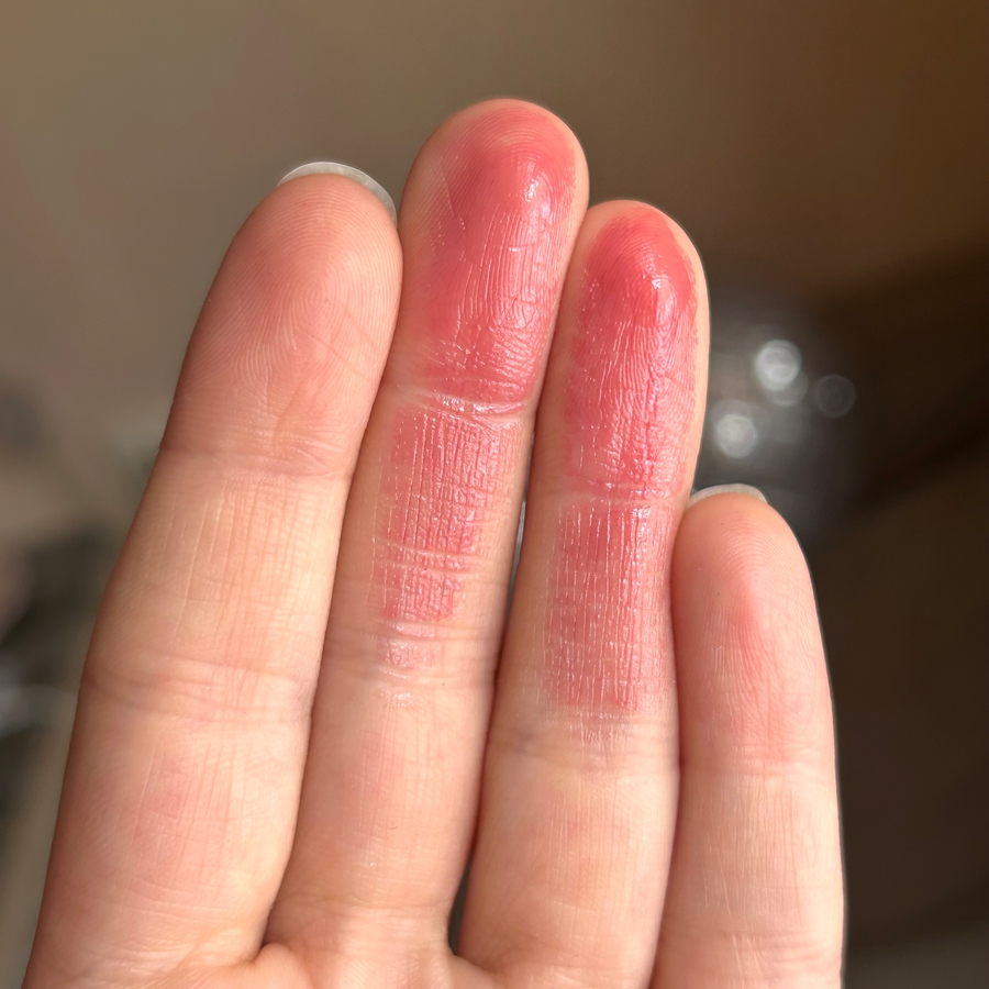 Пигментация хорошая, несмотря на то, что это бальзам. Мой цвет губ очень бледный и отлично демонстрирует насколько бальзам насыщенный.