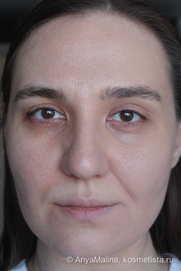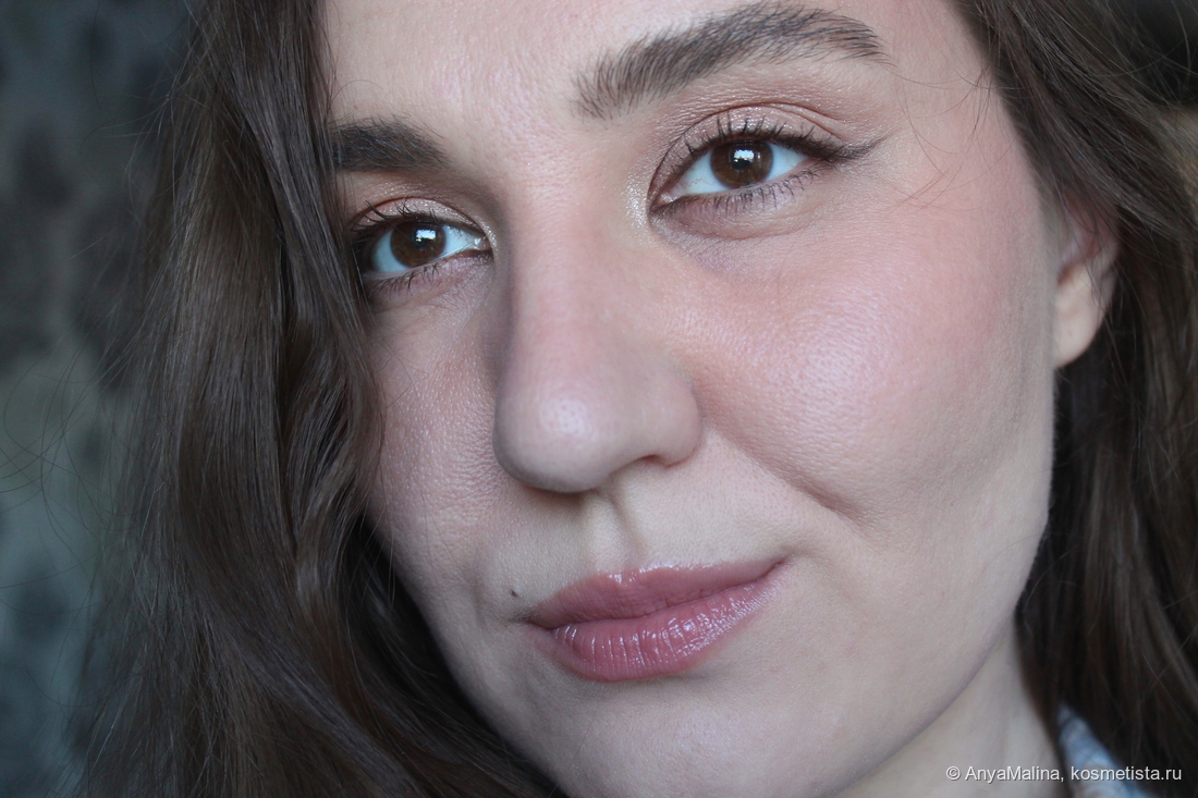 Вот тут заметно, что на носу стало ровненько справа, где есть тональный, а на щеках естественный финиш смотрится чуть влажно