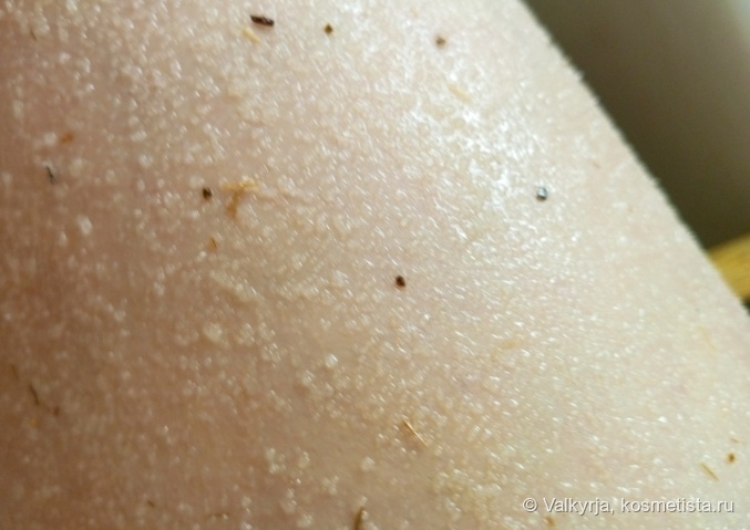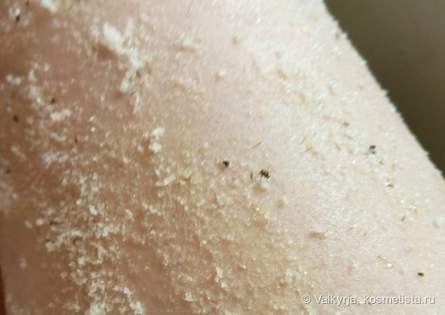 Опыт использования: на одно скраб ирование почти всего тела (кроме шеи и зоны декольте) ушло 2/3 пачки. Остальное полетело в ведро из-за невозможности использования