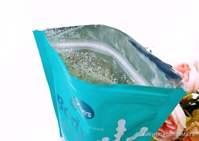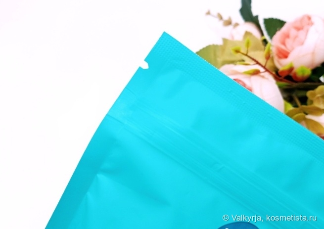 Формат этого скраба — рассыпчатый|сухой, поэтому упакован он в уже привычный дой-пак с зип-лок застежкой. Внешне пачка очень привлекательная, я люблю подобные тона а-ля Тиффани.