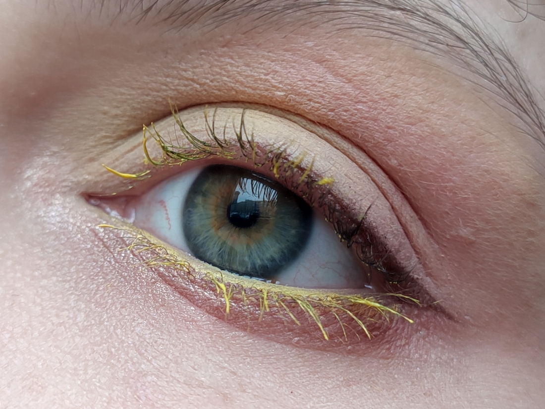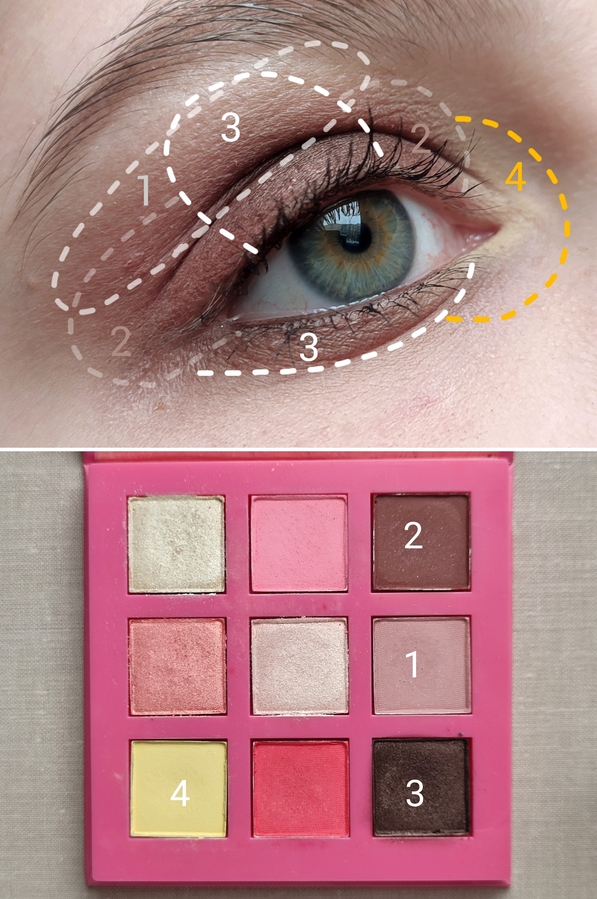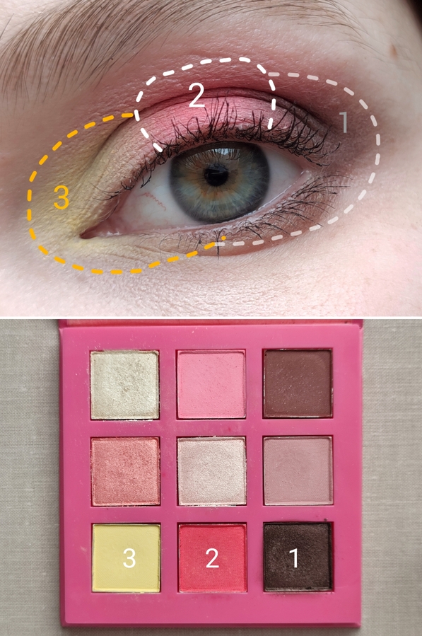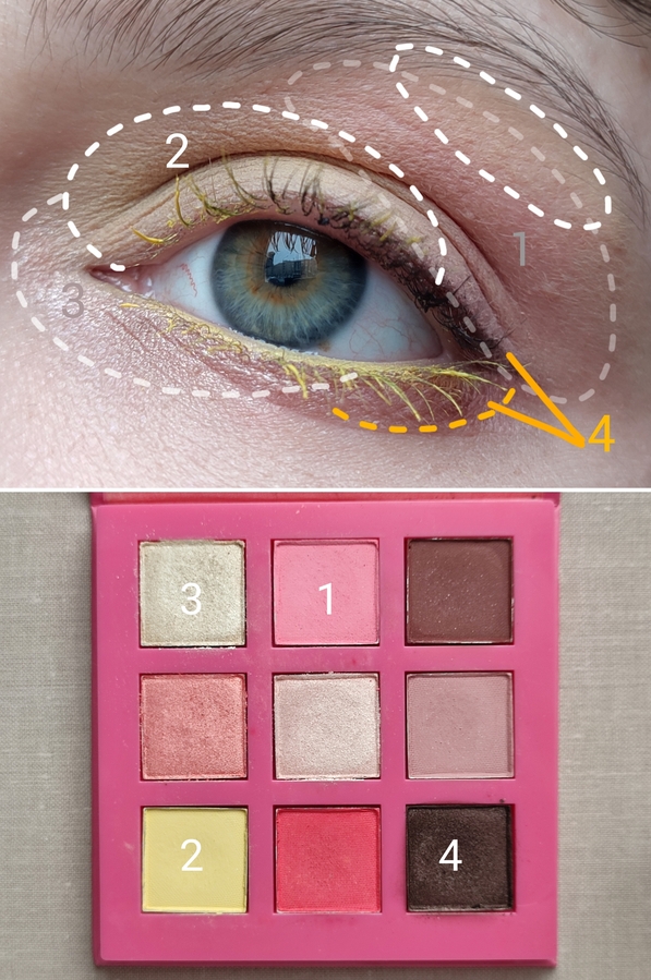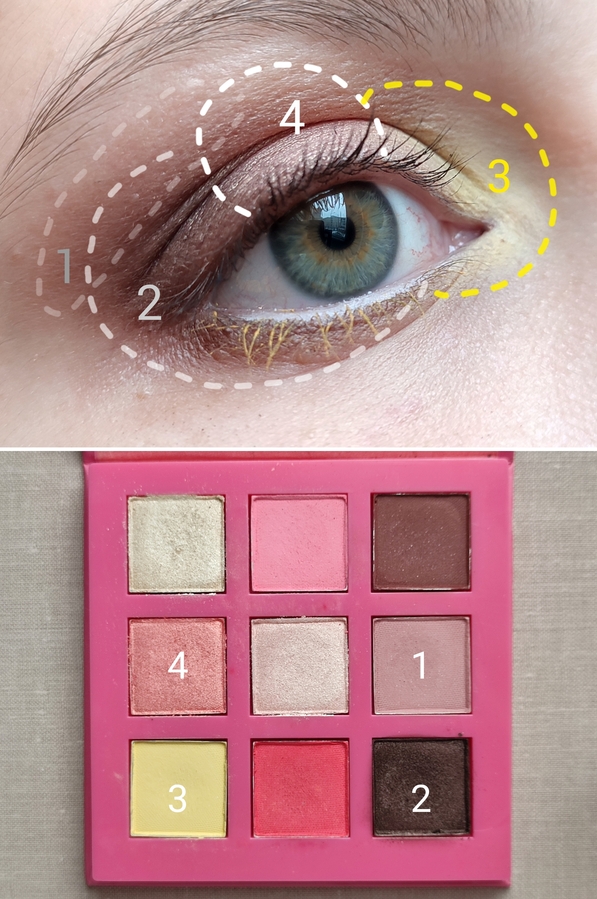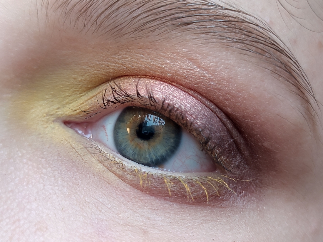 Вот так выглядит этот же макияж, но с желтой подложкой под жёлтый.