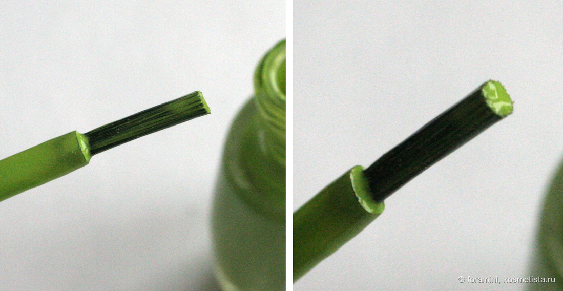 Кисточка с прямым срезом в сочетании с рыхлой текстурой лака вообще не радует.