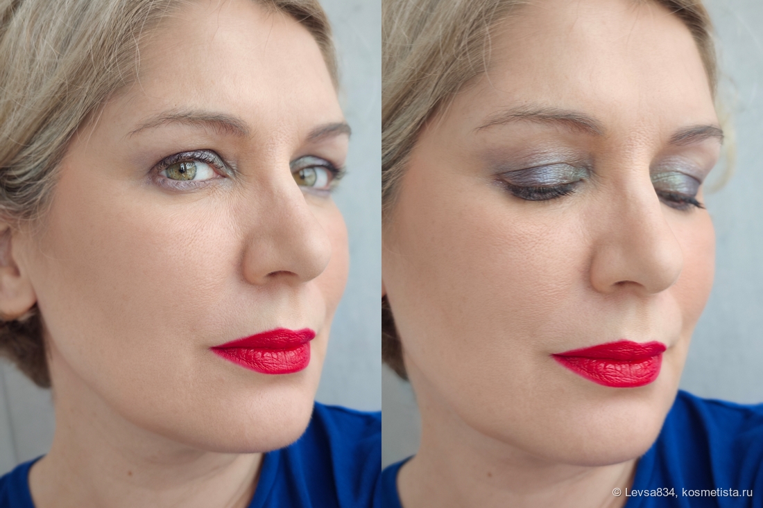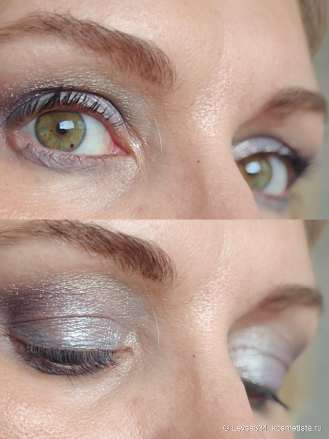Понятно, что с этой палеткой большого разнообразия не достичь (хотя это и не палетка одного макияжа), но она не для того и сделана. Пользоваться ей радостно, как-то так я могу охарактеризовать эмоции. Беру палетку, откидываю крышку, виду буйство холодных серо-лиловых и голубого, нравится. И даже хочется, чтобы они не кончались, тени эти. Вот так.