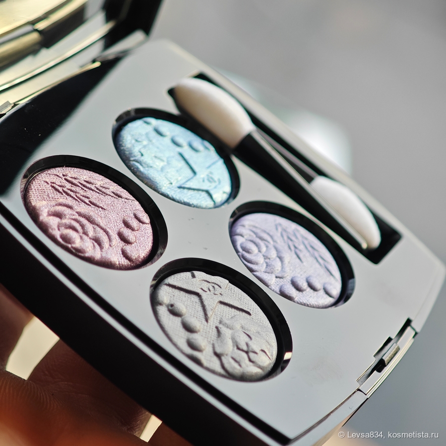 Вот, собственно, всё, касающееся внешнего вида палетки и общих характеристик теней. Общих, поскольку, несмотря на разные формулы и текстуры, ведут себя все четыре оттенка на веках примерно одинаково.
