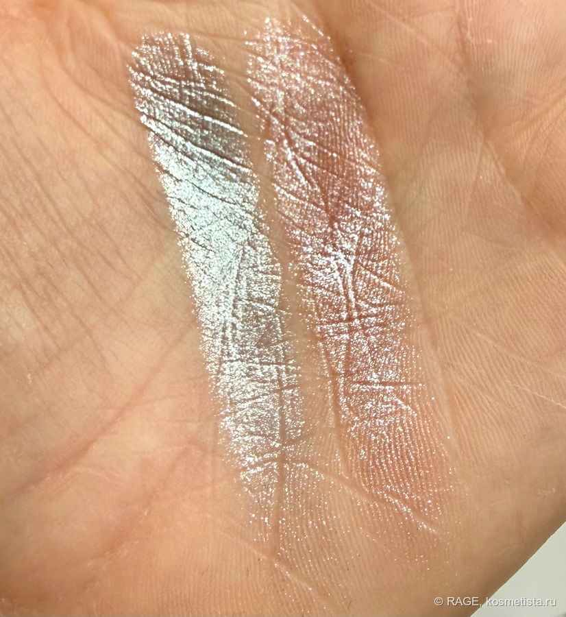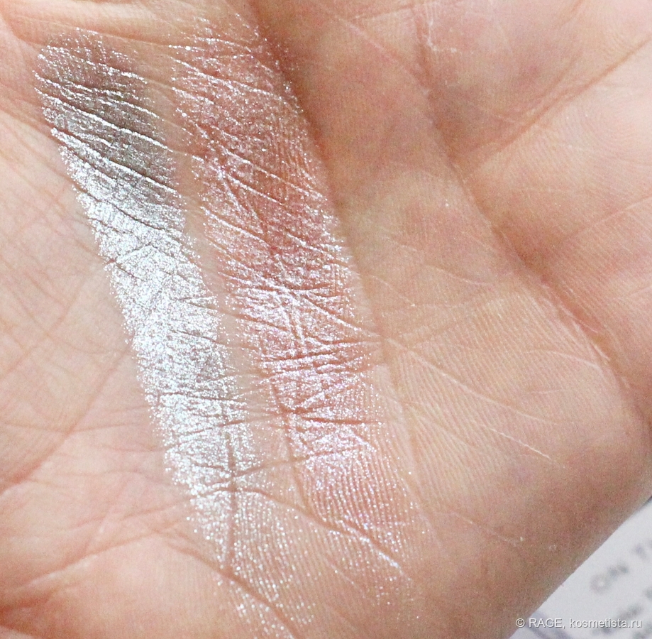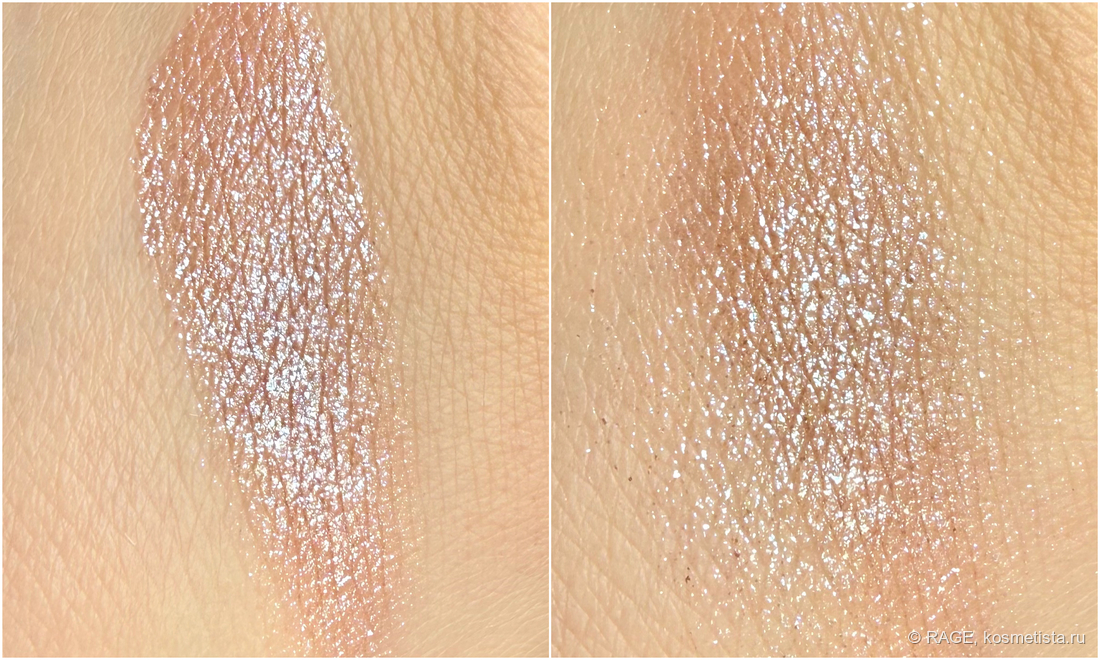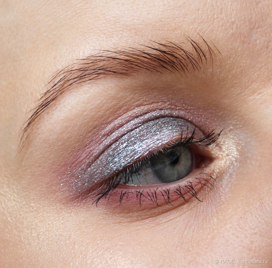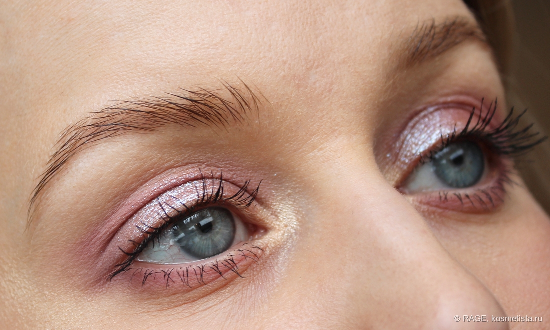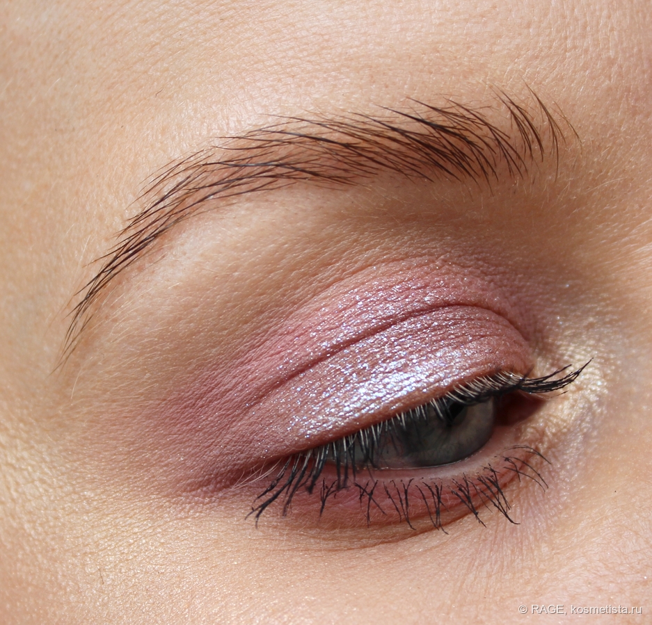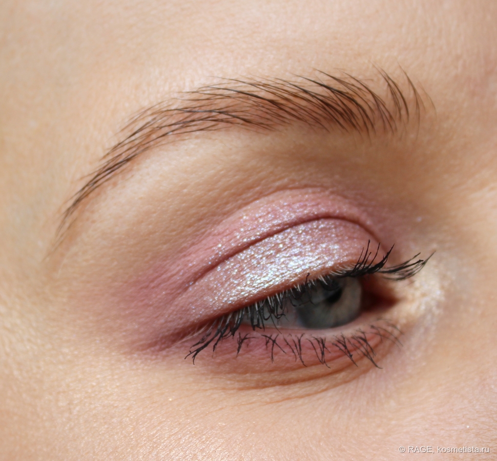 На веке оттенок 02 действительно даёт влажный эффект, мерцание выглядит очень деликатным и красивым: