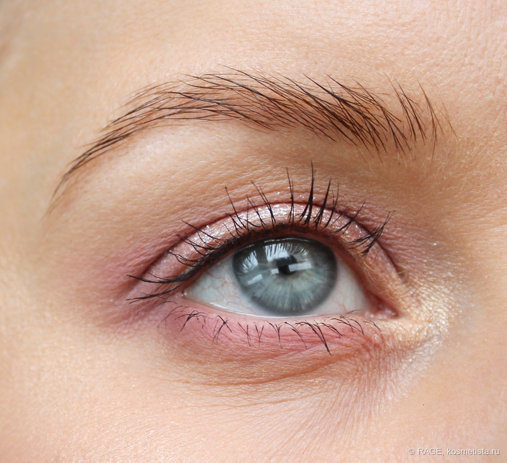 В один слой тушь немного прокрашивает и как бы слегка обозначает ресницы на глазах: