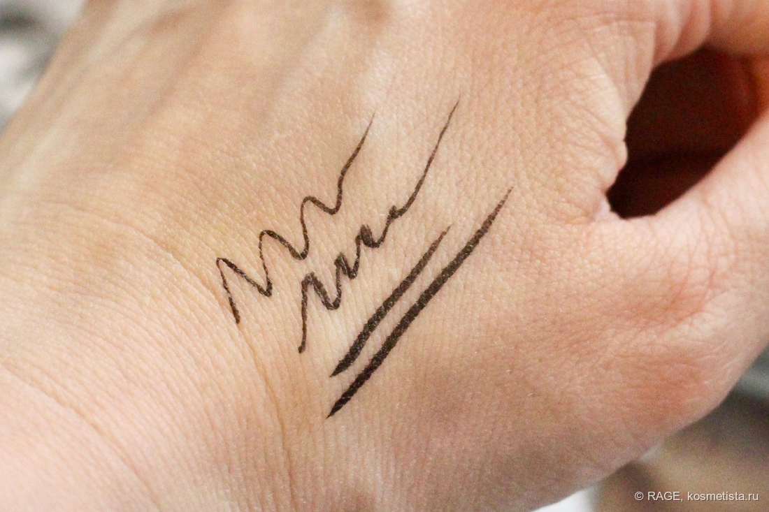 Текстура не слишком жидкая, без отдушки, оттенок – обычный чёрный, не ультра-блэк: