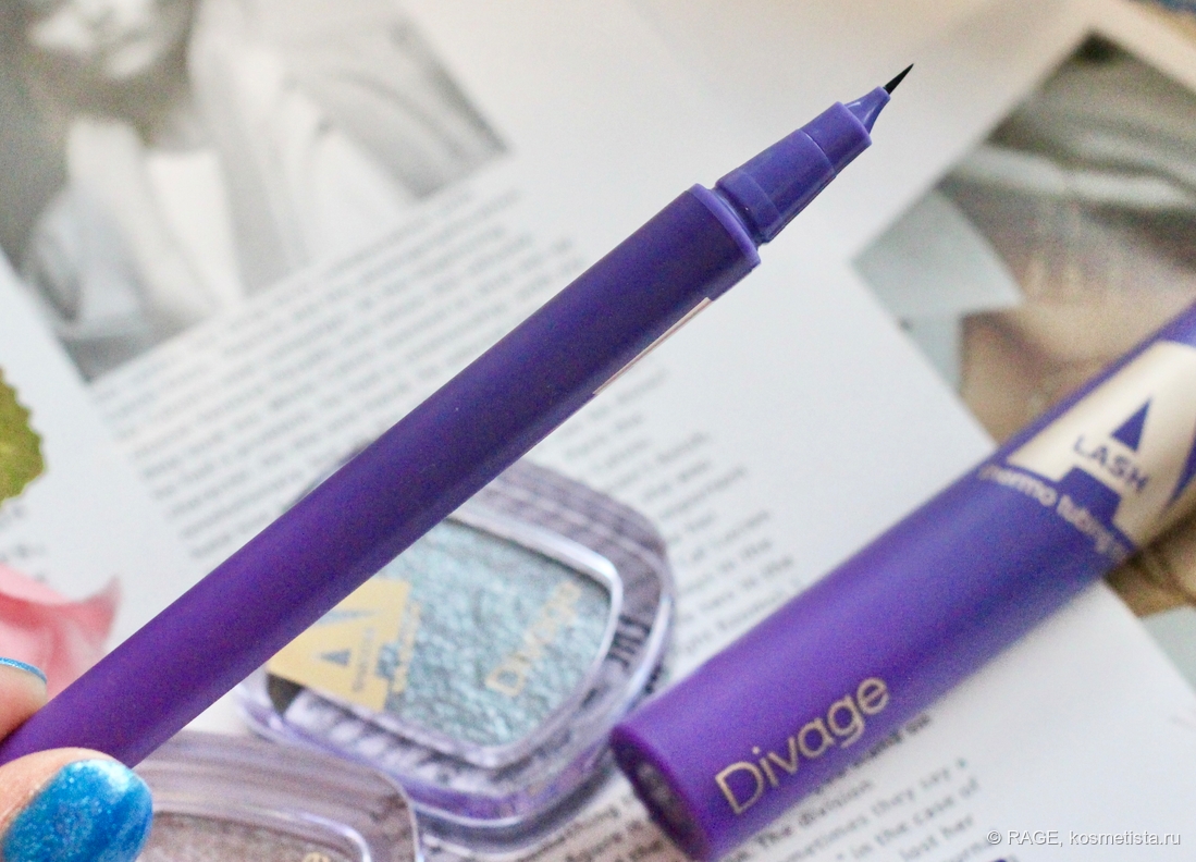 Аппликатор действительно особенный, и это очень приятное открытие для меня: он фетровый, но тоньше любой кисти. Прекрасно рисует тонкие линии, и создать им стрелочку – проще простого. Мой респект Диваж, наконец-то на рынке есть лайнер с по-настоящему удобным аппликатором.