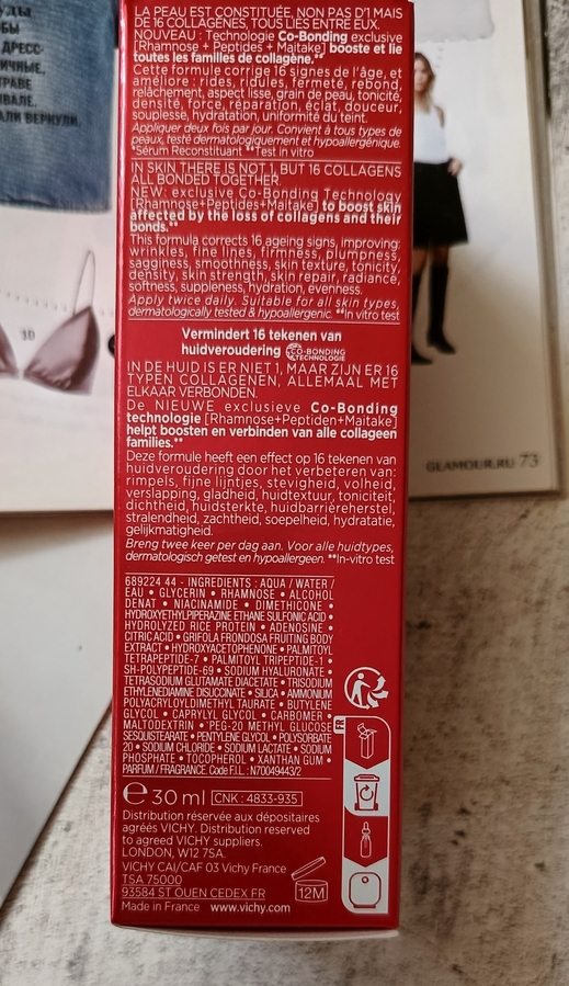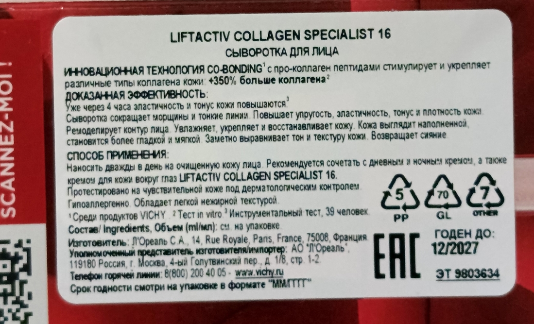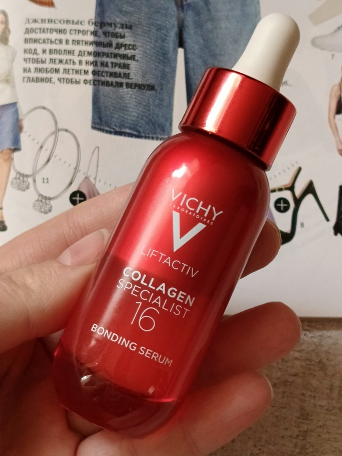 Попробовала почти всю серию Liftactiv Collagen Specialist и осталась только эта сыворотка. На момент написания отзыва она у меня закончилась, так что протестировала я её, что называется, «от» и «до».