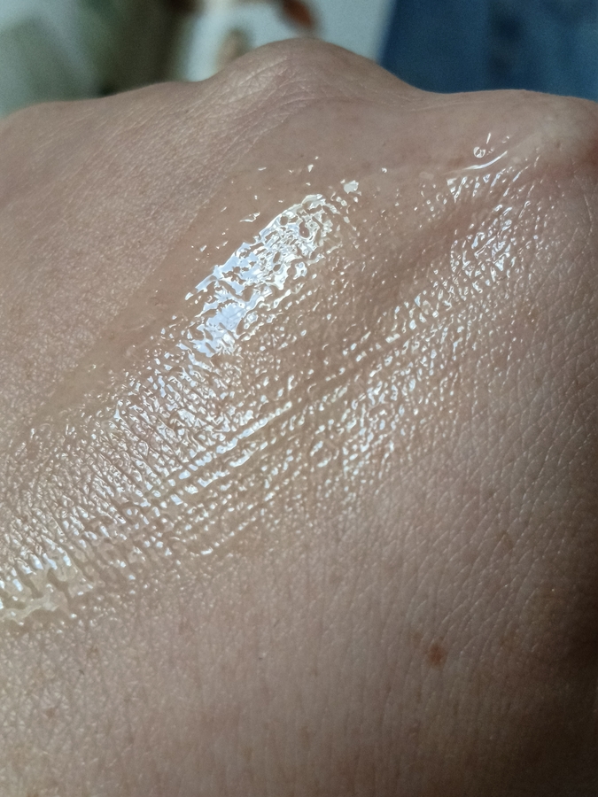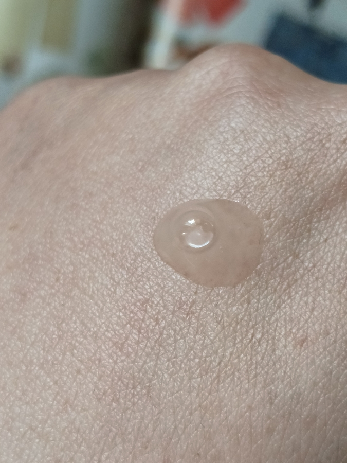 Текстура довольно жидкая, немного гелевая. Распределяется тонко и хорошо скользит по коже.
