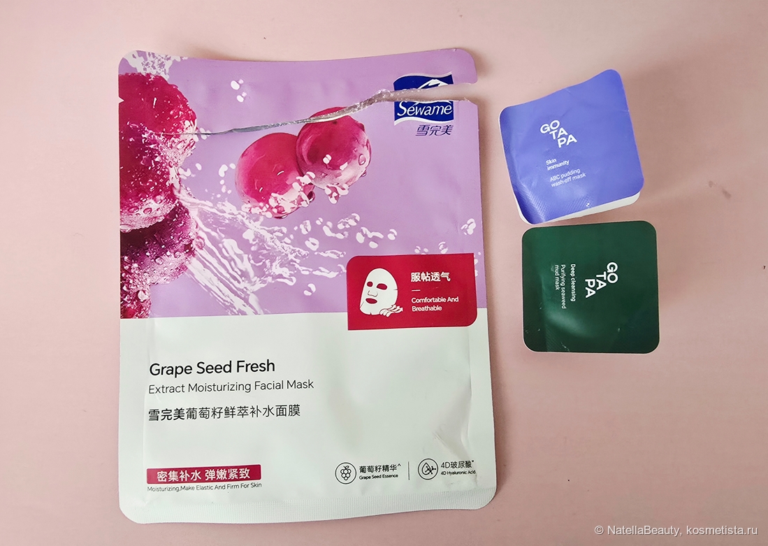 GoToPa маска для лица увлажняющая и маска для лица очищающая — обе маски понравились. Очищающая деликатная, не сушит кожу, но и поры очищает не полностью. Но для того формата супер. Увлажняющая приятная, хорошо увлажняет кожу.